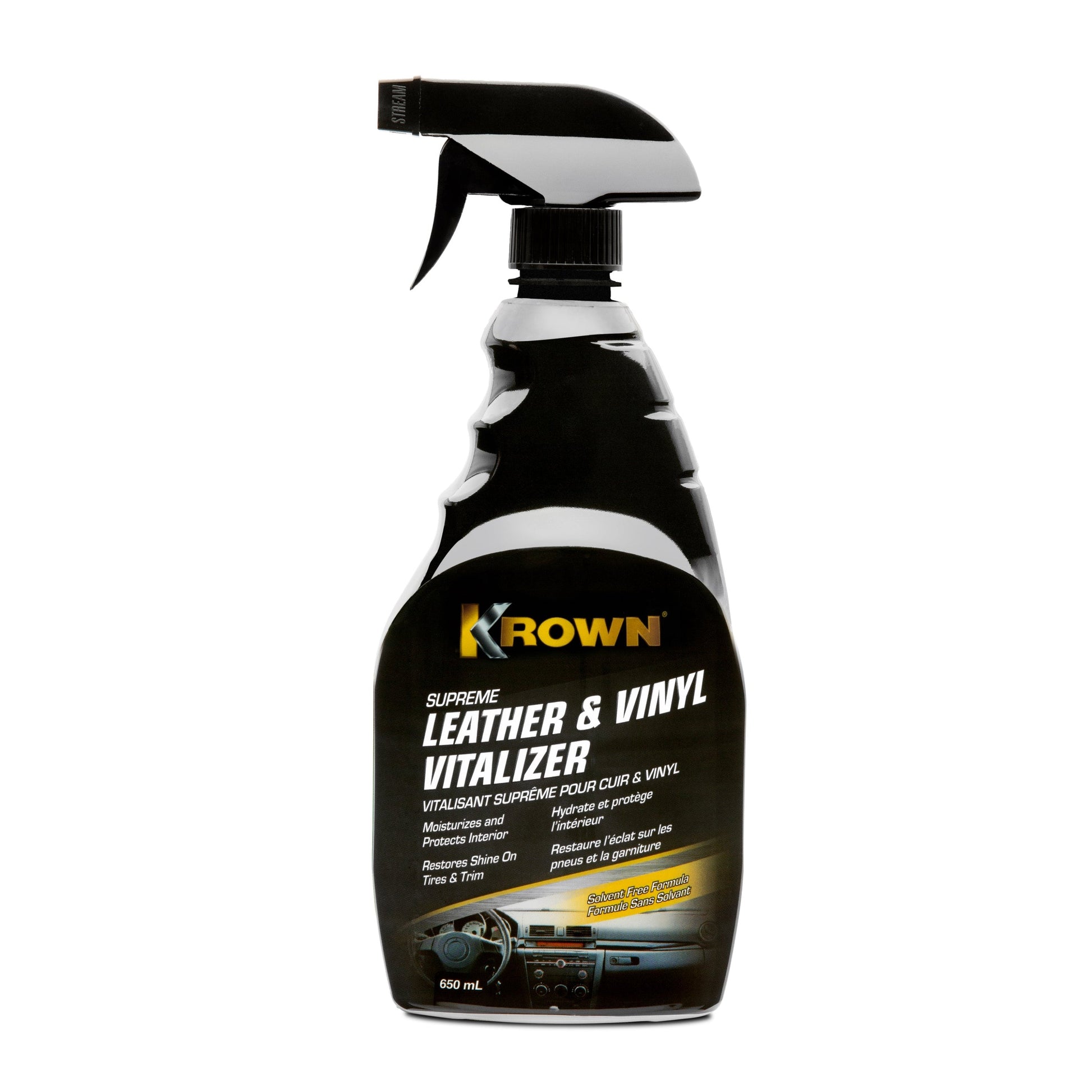 Ce produit d’entretien intérieur haut de gamme à base d’eau nourrit, protège et sublime le cuir, le vinyle, le caoutchouc et les moulures. Contrairement aux produits à base de solvant, il ne laisse pas de pellicule d’évaporation difficile à enlever sur le pare-brise. Sûr, efficace et facile à utiliser, ce produit de pointe non gras donne à votre véhicule un éclat magnifique et garde son intérieur dans un état impeccable, parfaitement entretenu.
